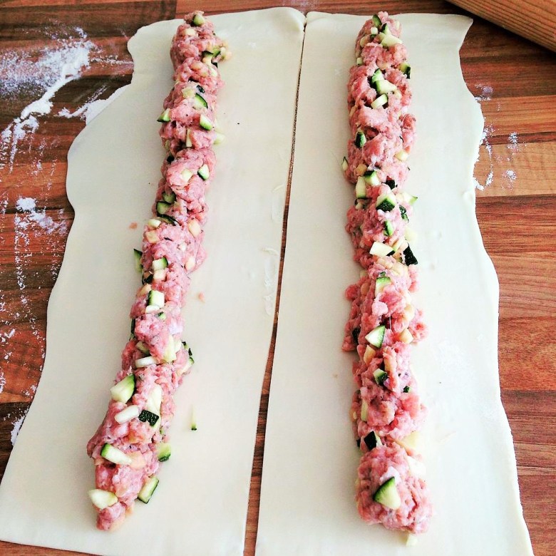 In the sausage rolls I have pictured here I added pieces of chopped up apple (I love the combination of sausage and apple), plus some chopped courgette.