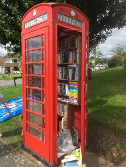 Yesterday my children and I visited a telephone box library in Alveston. The traditional red phone box, long disused, has been remodelled into a quirky little library, with shelves full to the brim with books for children and adults!