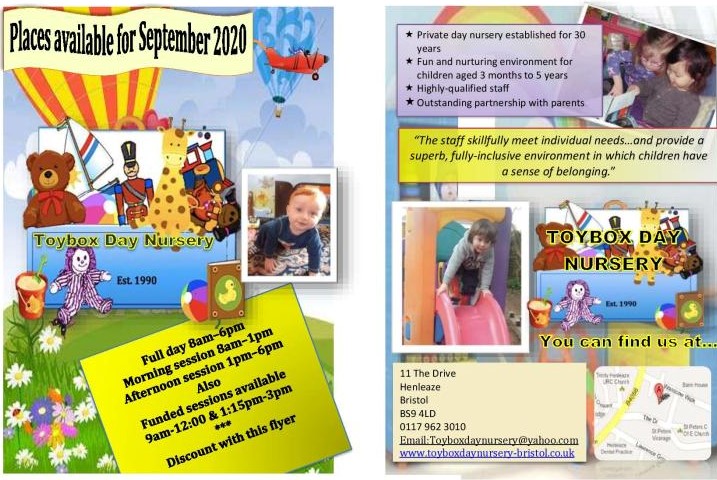 Please contact the Toybox Nursery team on 0117 9623010 or email toyboxdaynursery@yahoo.com for more information.