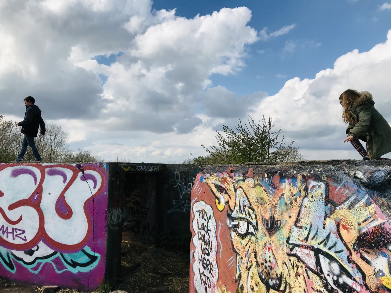 The gun battery is now covered in graffiti but an interesting find for older kids nonetheless; my kids enjoyed climbing and balancing on the walls.